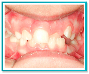 A seguir, a foto de um caso de overjet (dentes para frente) acentuado.